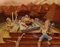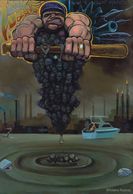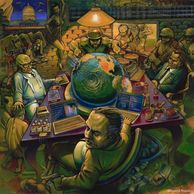 Oil on Canvas 40in x 48“Some say Washington is broken, what a shame the two parties can’t cooperate. Some say it’s tragic jobs and wealth have shifted overseas. Others can’t understand why our standard of living is declining and that since 9_11 the country has gone downhill due to unforeseen forces beyond our control. What a profound coincidence the emergence of new players, China, India, Russia, Iran should coincide with U.S. decline. Or is it? ”.