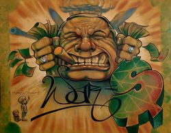 Keeping one’s sense of humor these days can be a good thing. Through a lens of satire The Modern Times series of artworks depicts a view of our world that is kind of dark, problematic, even scary. Intending to shine light on the secretive back room activities of our esteemed institutions. The artworks in this series are crafted in a fusion of street art, comic book and classical artistic styles.