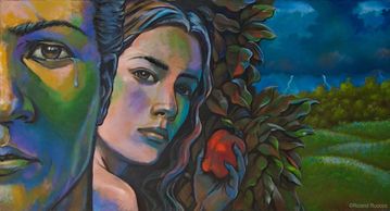 As co-creators and masters of our collective reality, it is up to us to choose universal peace and love as a solution to guide our path forward and focus our collective energies to manifest heaven on earth as our planetary reality. Set in a hopeful future, stylistically some artworks in this series are inspired by eighteenth century Romanticism, others by urban street art. The images depict higher conciousness, ethereal energies, inter-dimensionalism and the knowledge that all is alive on this living planet that we do not own but are sharing with an incredible number of living things that have their rightful place down to the atomic level, all connected as we are to one source.
